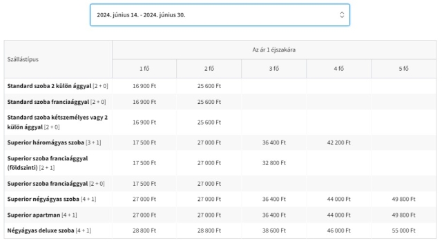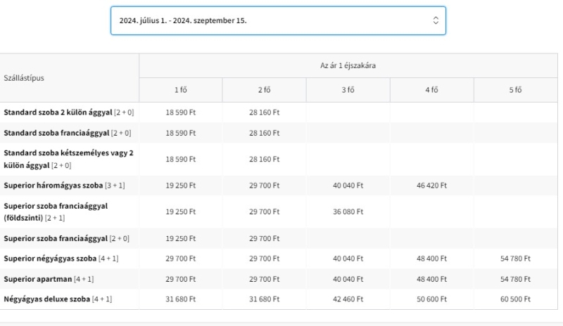 Ha 2026. július 1. és augusztus 31. között egy éjszakára keres szállást, kérem hívjon a