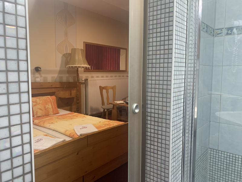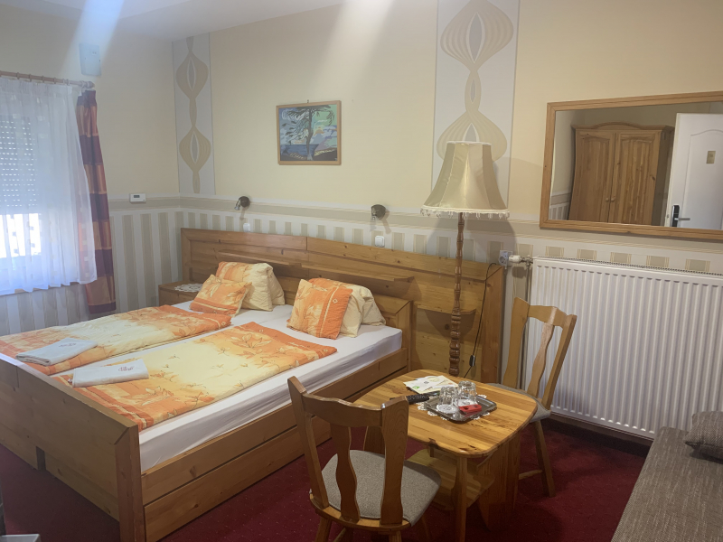 A 21 m2 alapterületű földszinten elhelyezkedő szobánk 2020-ban lett felújítva, amely karnyújtásnyira található a kerthelyiségtől. Ajánljuk mindazoknak akiknek a helyiség egyszerű megközelíthetősége fontos szempont a szoba kiválasztásakor. Az igényesség jegyében a szoba fenyő bútorokkal és padlószőnyeggel ellátott.
